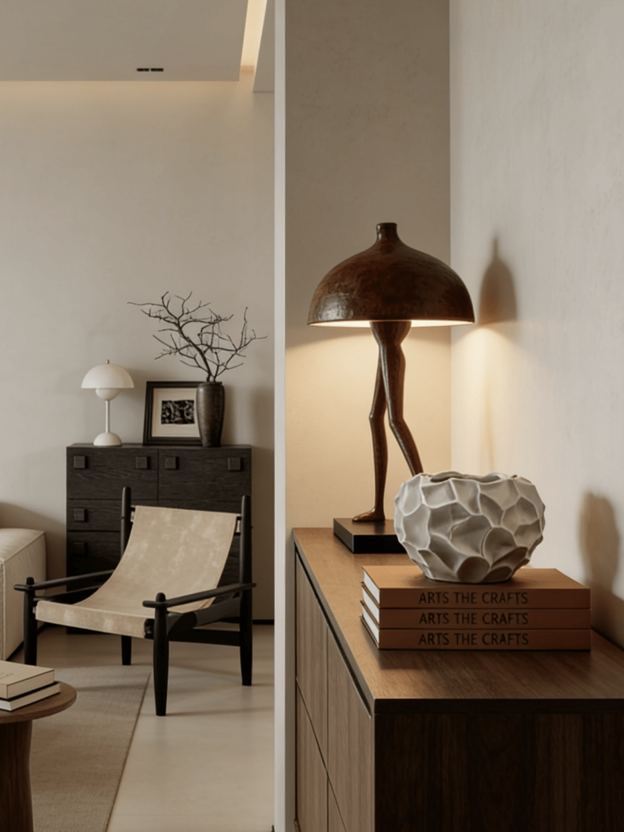 • Sideboard / Entryway: Use the companion vases for small dried botanicals to frame the central sculpture.