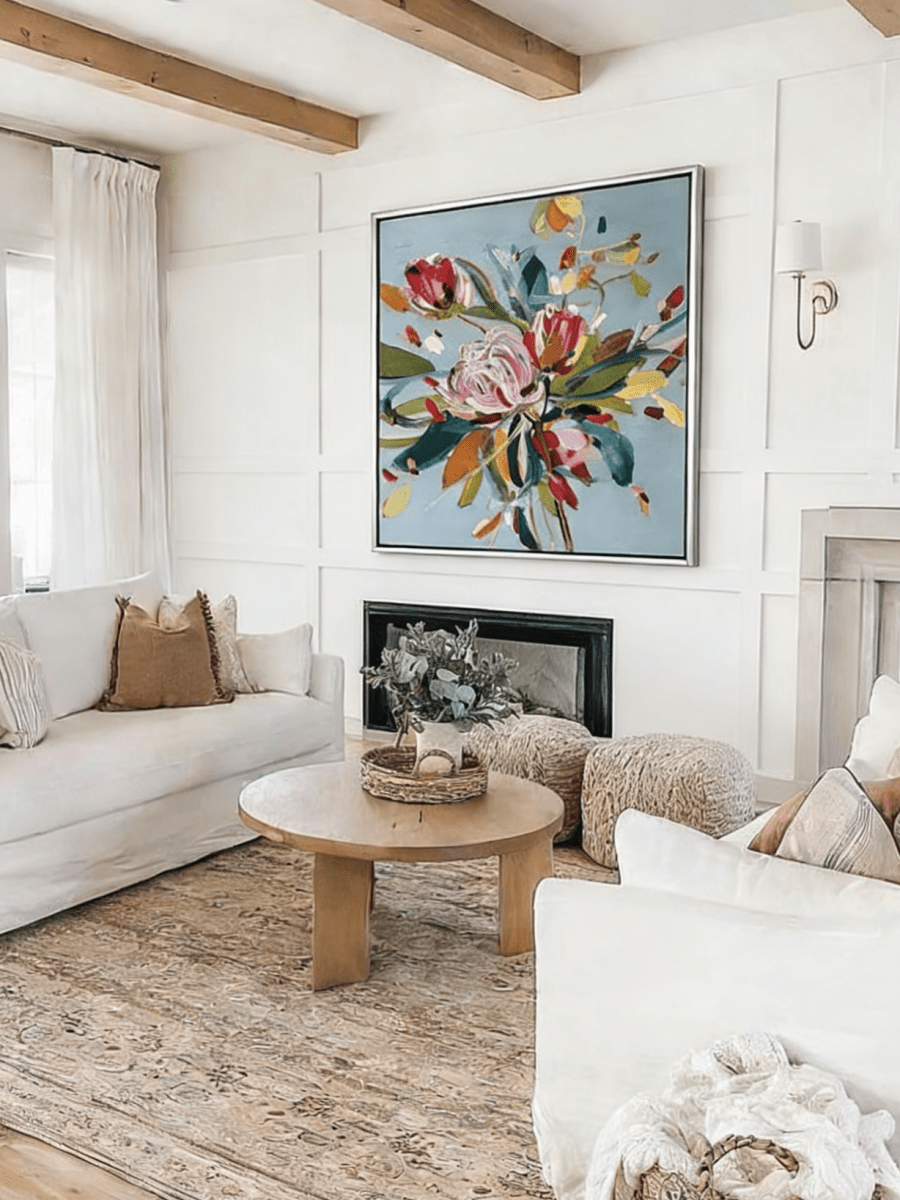 Q9: Does it suit a modern farmhouse or industrial style? A: Absolutely. The organic floral theme softens Industrial spaces, while the bold expressionism adds a contemporary edge to Modern Farmhouse decor.
