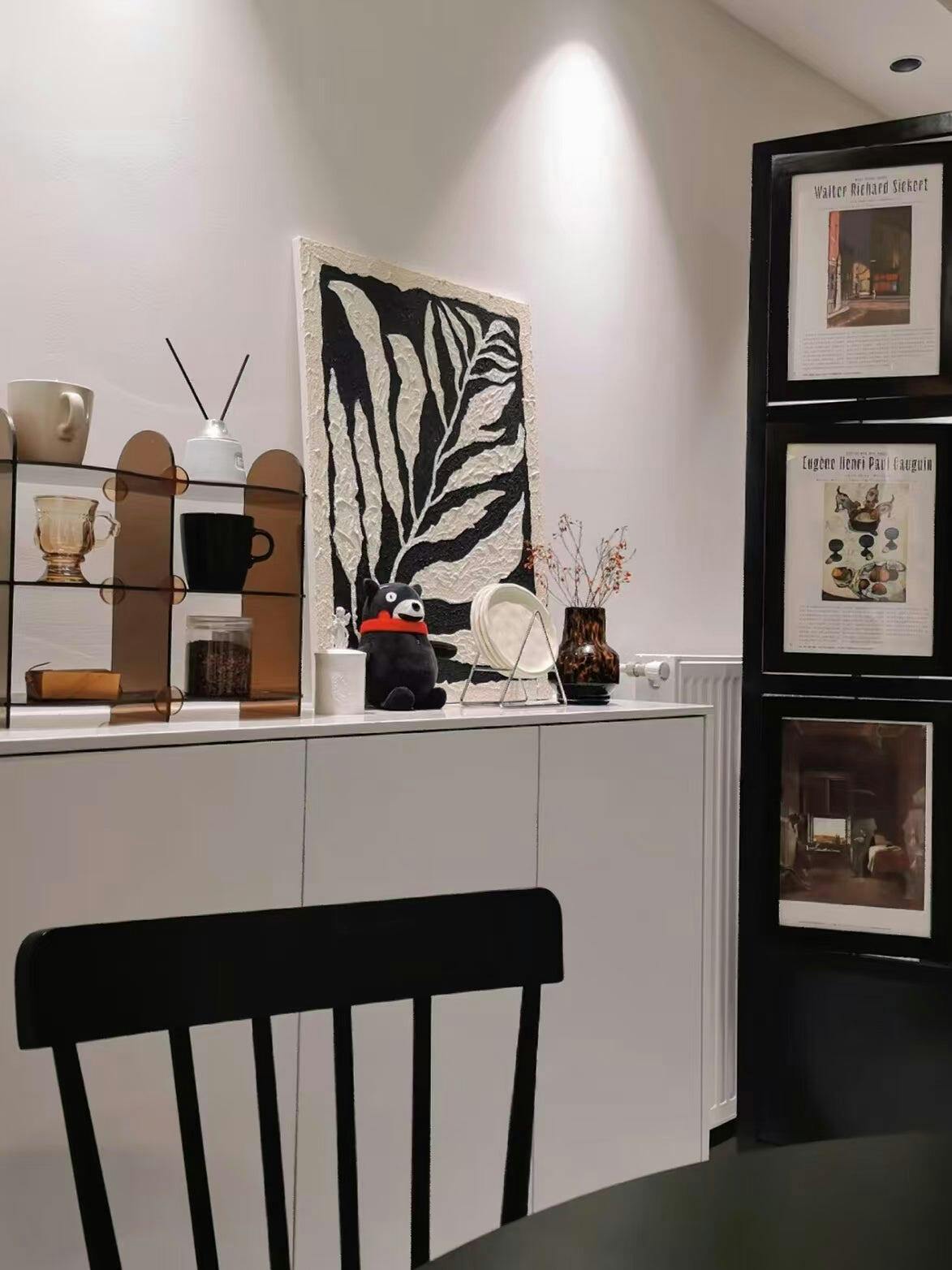 The Creation Story: Beauty in Contrast Artist Luna Xiao finds her inspiration in the rhythmic shadows cast by foliage under the midnight sun. "I wanted to strip away the color to reveal the raw architecture of the leaf," Xiao explains. By utilizing a specialized heavy-body gesso and palette knife technique, she transformed a simple botanical silhouette into a physical landscape of peaks and valleys. This piece is a meditation on the strength and simplicity of nature, hand-crafted to bring a grounding presence to the modern home.